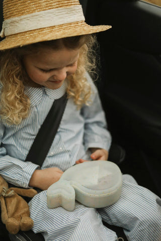 Emportez vos collations préférées dans notre boîte à goûter en silicone en forme de baleine.