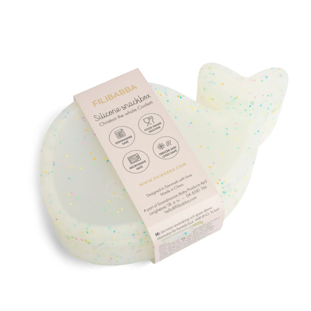 La conception amusante embellit votre goûter tandis que le silicone flexible et durable assure un nettoyage facile. Des confettis intégrés ajoutent une touche de festivité à cette boîte à goûter lavable au lave-vaisselle.