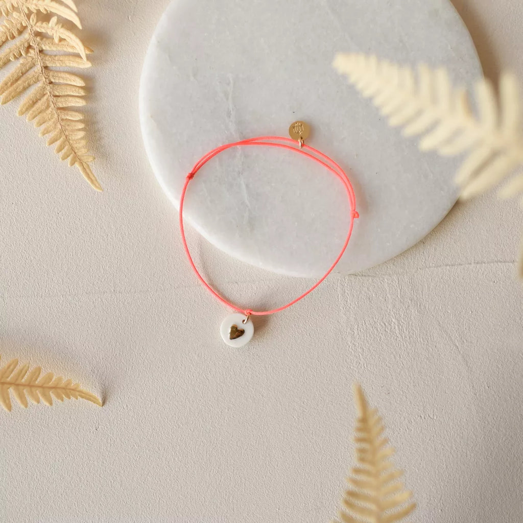 Le Bracelet Médaillon Coeur - Rose fluo, c'est l'amour sous toutes ses formes ! Avec son médaillon indémodable en forme de coeur, il apporte une touche douce et élégante à toutes les tenues. Il peut être porté seul ou en association avec d'autres médaillons pour transmettre de jolis messages. Confectionné avec soin, il s'adapte à tous les poignets grâce à ses noeuds ajustables.