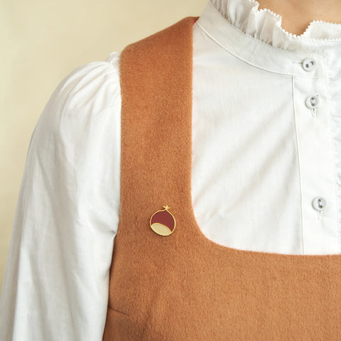Le pin’s Châtaigne célèbre l’automne avec charme et bonne humeur. Ce petit symbole gourmand, rappelant les châtaignes grillées, s’accroche joyeusement sur une veste ou une écharpe pour un look plein de douceur. Pour un style encore plus fun, assortissez-le à la mini pince coordonnée dans les cheveux et laissez l’esprit de la saison vous accompagner partout !