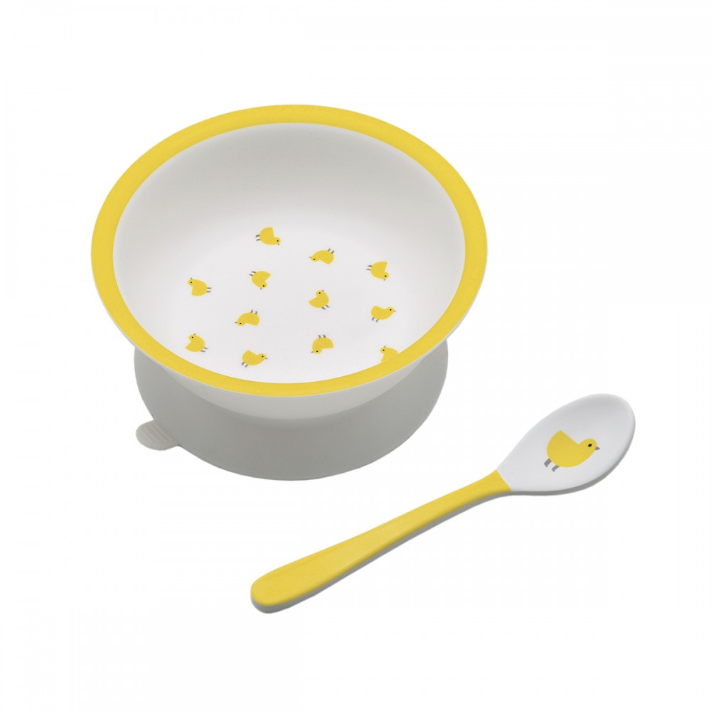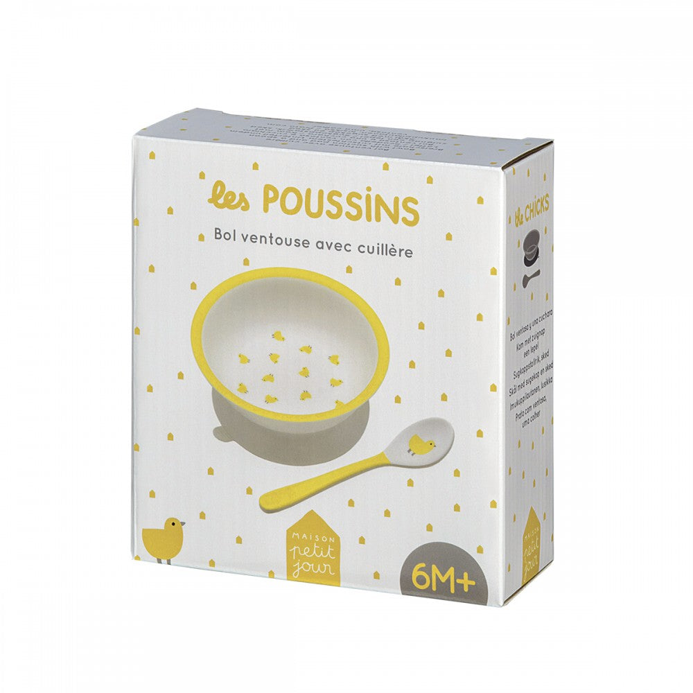 Bol ventouse avec cuillère les poussins