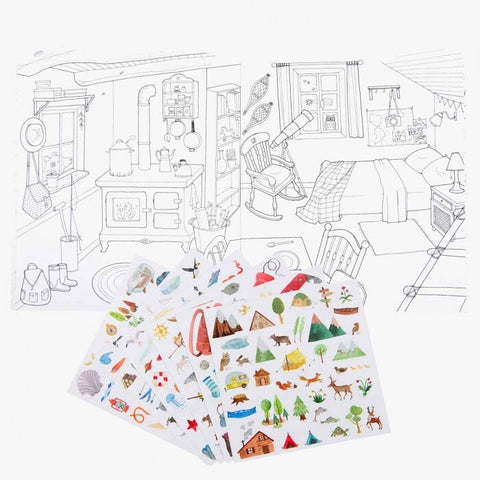 Cahier de coloriage avec 195 stickers sur le thème de l'exploration. Partir à la découverte des grands espaces et leurs habitations, voyager tout autour du monde… en coloriant !
