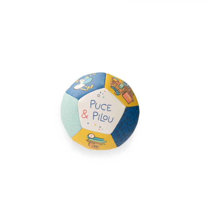Puce mange des céréales, Cacahuète écoute de la musique, Marco a mangé des biscuits en cachette ? Petite balle en vinyle pour jouer à l’intérieur comme à l’extérieur et découvrir l’univers de Puce et Pilou.