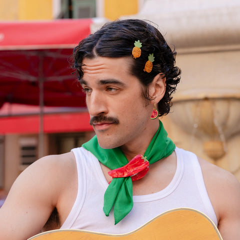 Voici la touche finale parfaite pour votre look champêtre : la barrette Ananas de Coucou Suzette ! Glissez-en une, ou deux si vous osez, dans vos cheveux et voilà, vous êtes prêt.e.s pour un pique-nique stylé et vitaminé. Un accessoire fruité qui met du peps dans vos mèches et dans votre journée !