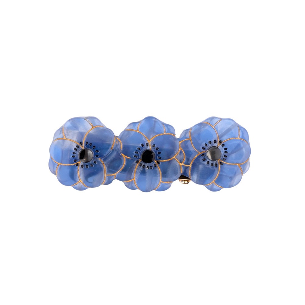 Ajoutez une touche de fraîcheur à vos coiffures avec la barrette Anémone. Les détails dorés et les petites anémones bleu océan en acétate de cellulose sont parfaits pour décorer vos cheveux ou vos tenues.