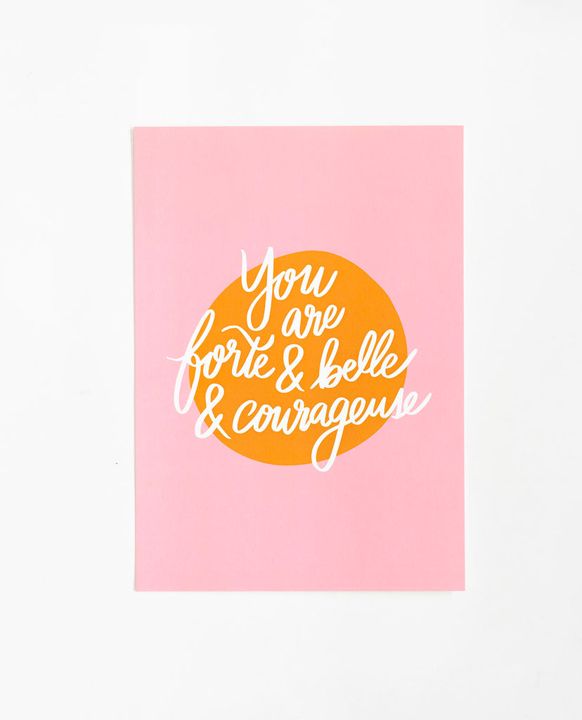 You are BELLE mais pas que ! Forte et courageuse bien sur aussi et cette affiche te le prouvera tous les jours. À afficher sans hésiter avec ses couleurs pétillantes qui iront bien chez toi.