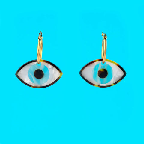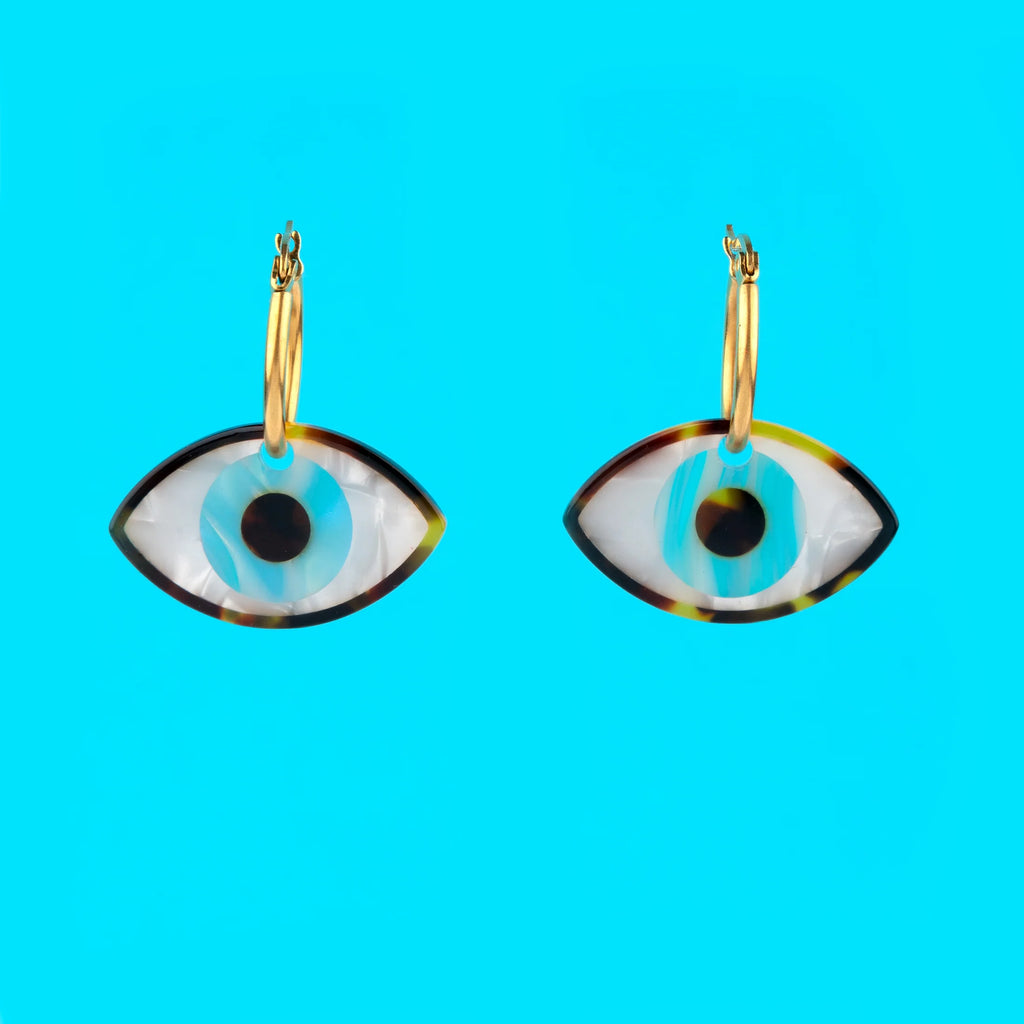 Faites tourner les têtes avec ces charmantes Boucles d'oreilles Oeil - bleu ! Dotées d'un anneau doré et d'un emblème d'œil bleu turquoise irisé, elles ajoutent une touche de fantaisie à votre tenue. L'accessoire incontournable pour une apparence enjouée et un brin de bonheur ! Les porter, c'est un vrai plaisir !
