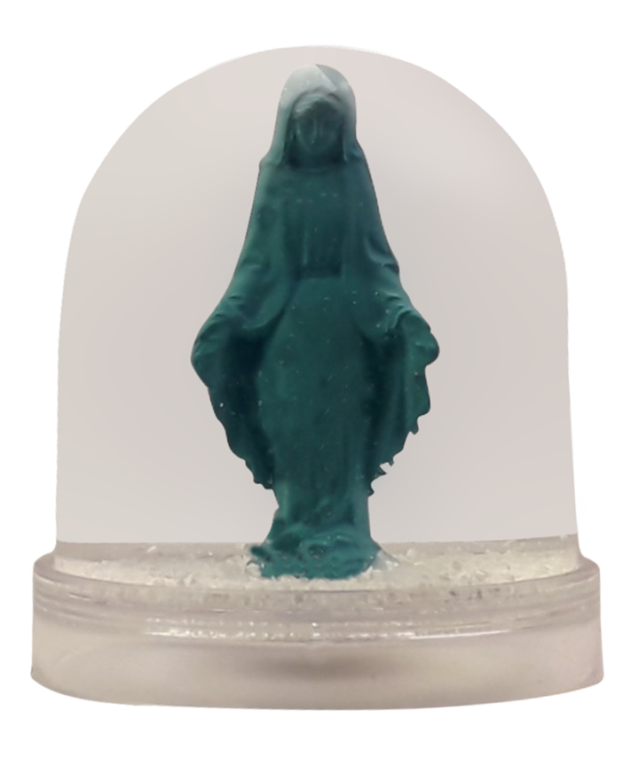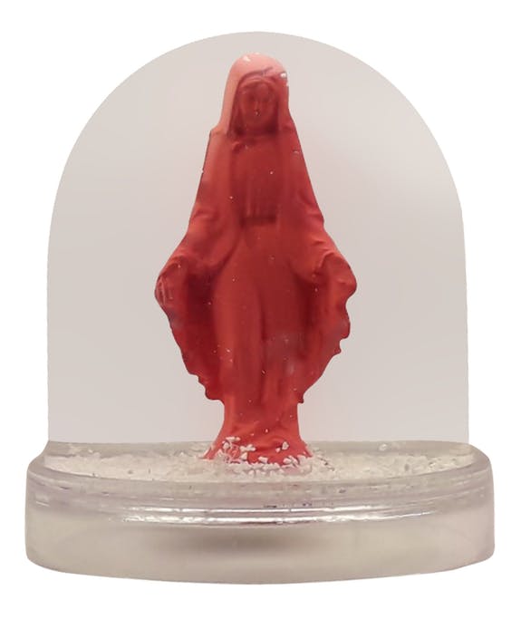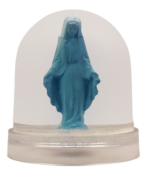 Dans sa boule à neige, Miracle drapée en couleur invite à la rêverie.