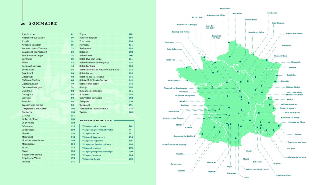 Dans ce beau livre superbement illustré, nous avons sélectionné pour vous un centaine de villages pas comme les autres qui risquent bien de vous donner envie de partir au vert : des villages méconnus, atypiques, d'une beauté renversante et au caractère bien trempé – des villages, en un mot, uniques. Connaissez-vous ainsi Cliousclat, le village des potiers de la Drôme ? Ou Treignac-sur-Vézère, pépite corrézienne, où ont régulièrement lieu des championnats internationaux de canoë-kayak ? Et si on délaissait les villages surcotés du Vaucluse pour découvrir Saignon, un éblouissant village perché du Luberon encore à l’écart des foules ?