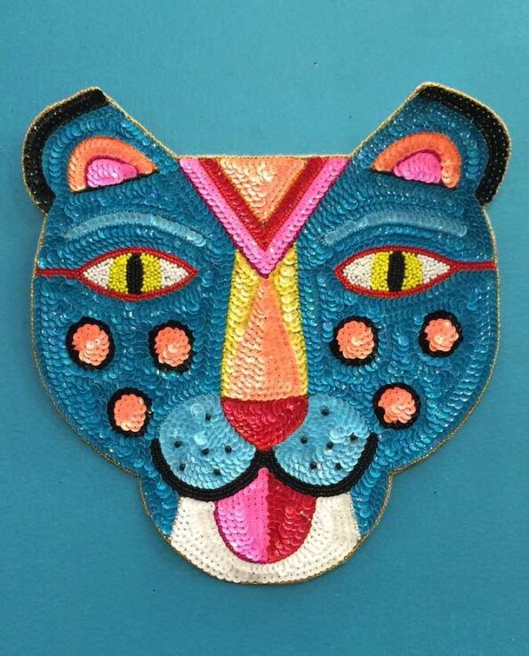 Cet écusson à coudre tigre du Mexique a été dessiné par Margaux Carpentier pour Tienda Esquipulas. Il rappelle l’importance des grands félins dans les mythologies mayas et aztèques. Brodé main. Son apparence bonhomme en fait tout à la fois une décoration de chambre d’enfant comme un écusson à coudre sur toute sorte de support (sac, veste, etc.). Couleur turquoise.