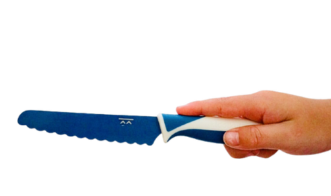 Ce couteau coupera comme un couteau pointu mais il ne coupera pas les doigts des enfants grâce à sa lame en acier inoxydable dentelée. Il fonctionne comme une scie. Kiddikutter n’est pas tranchant, donc il ne hachera pas.
