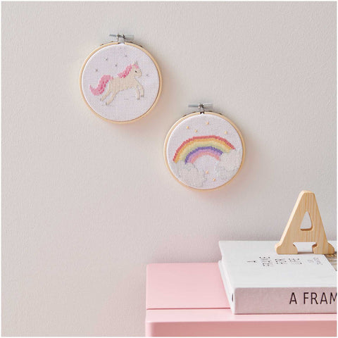 Laissez votre imagination arc-en-ciel prendre vie avec ce mini kit de broderie ! Parfait pour les débutants en broderie, le motif d'un diamètre de 10 cm vous mènera à des résultats rapides et uniques. Vous aurez à votre disposition un savant mélange de broderie à 6 brins en 100% coton et de tissu Aida 100% coton de 6,4 points/cm facile à manipuler. Vous trouverez également un cercle à broder en bambou, une aiguille et des instructions détaillées avec le motif de comptage ! Une chose est sûre, le Kit Broderie Mini Kit Tableau Arc-en-Ciel répondra à vos besoins créatifs
