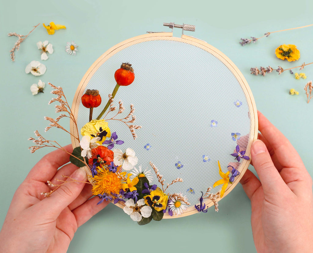 Choisissez vos fleurs pendant une promenade puis faites les sécher ou utiliser les fleurs déjà dans le kit.