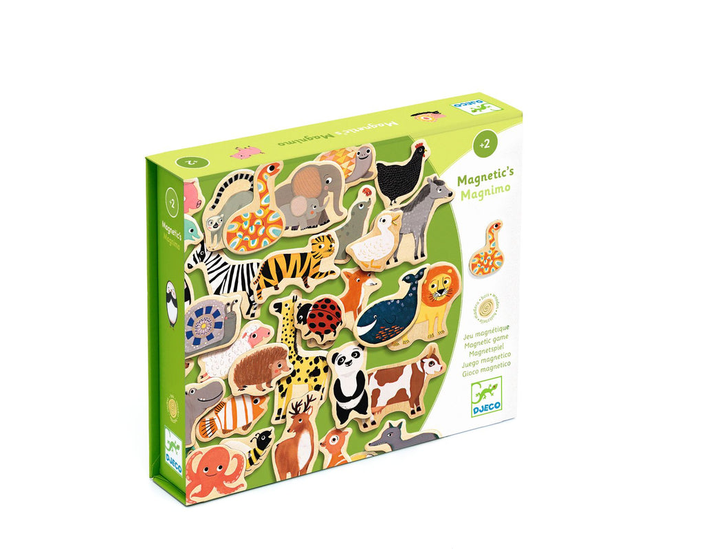 Magnimo est un imagier magnétique des animaux du monde. L'enfant voyage avec ce coffret de 36 animaux magnétiques en bois.