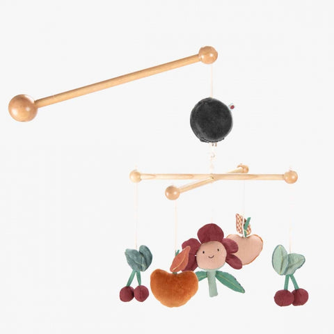 Cerises, fleurs et pommes des bois… que de petits trésors colorés à observer et une jolie mélodie à écouter pour l'heure du coucher. Empli de douceur, ce mobile en bois, certifié OEKO-TEX®, offrira un adorable spectacle avant de rejoindre le pays des rêves.