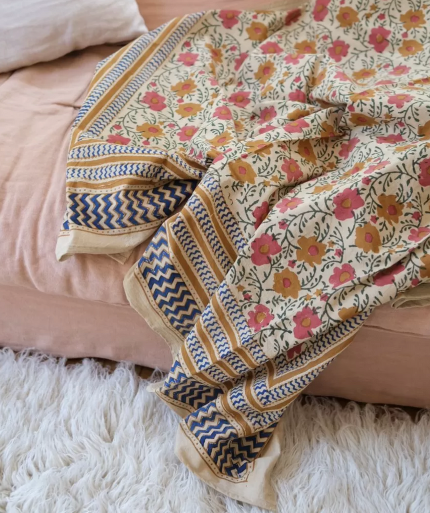 Ce charmant plaid Botanical est imprimé à la main avec des blocs de bois sculptés et s’adapte à différents usages. Déposez-le sur votre lit, sur votre canapé ou emmenez-le avec vous pour une journée à la plage ou lors d’un pique-nique.