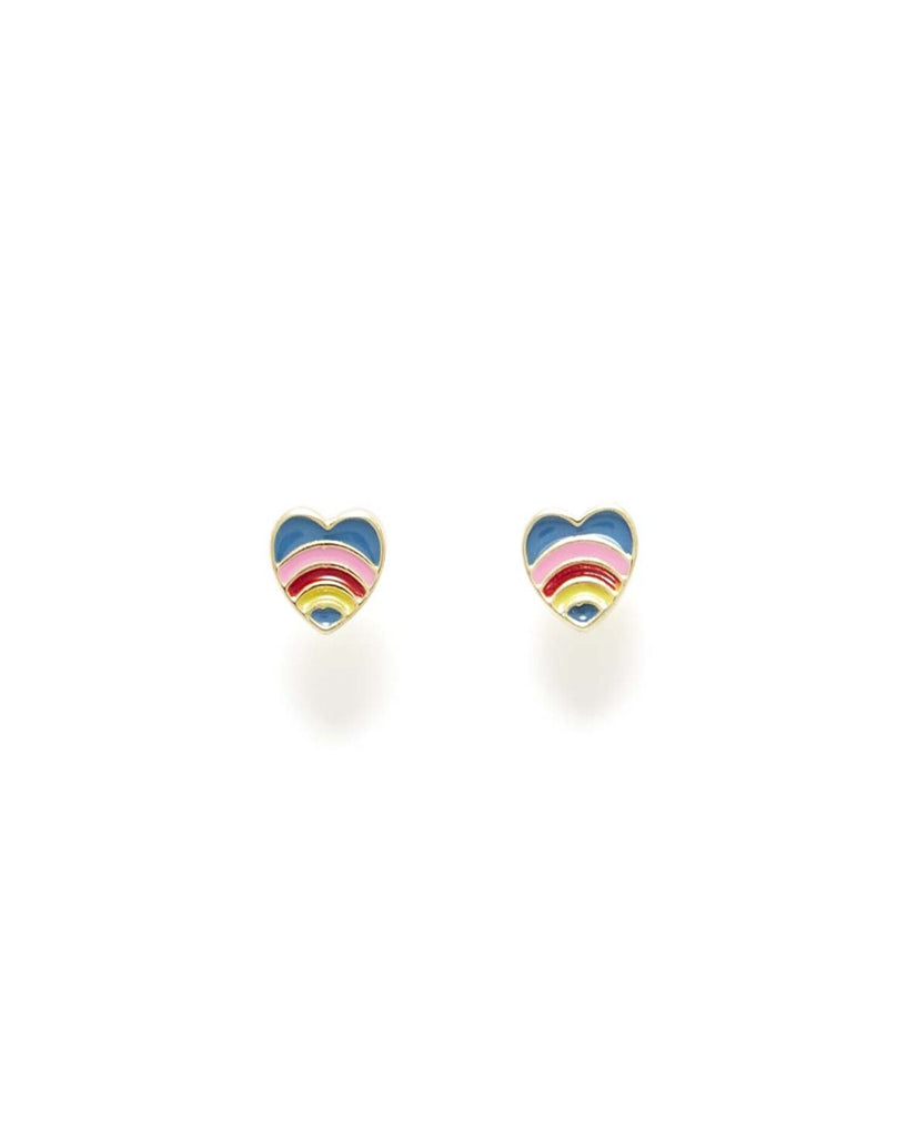 Les boucles d'oreilles Coeur arc-en-ciel en métal émaillé vont aussi bien aux enfants qu'aux mamans !