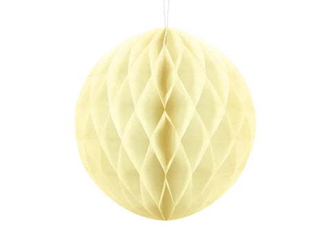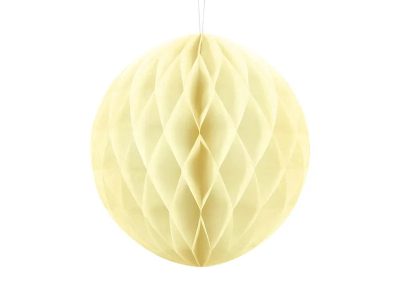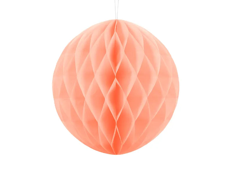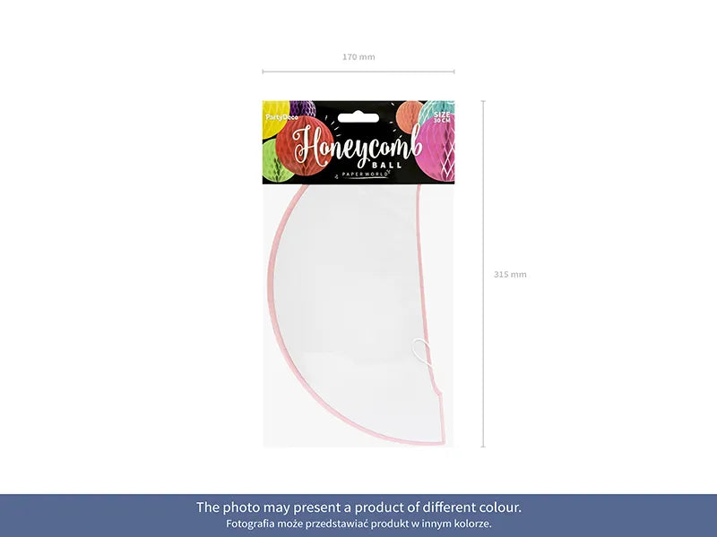 Boule de papier alvéolé de couleur, diamètre de 20 à 30 cm. Produit réutilisable. Montage avec une pince.