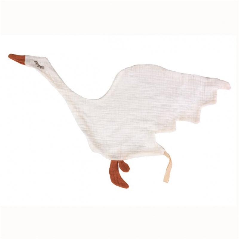 Un adorable petit doudou tout doux en coton naturel double gaze. Cette petite oie apportera un sentiment de sécurité et de réconfort aux petits. Une petite lichette est prévue pour attacher la tétine. Lavable en machine à 30°.