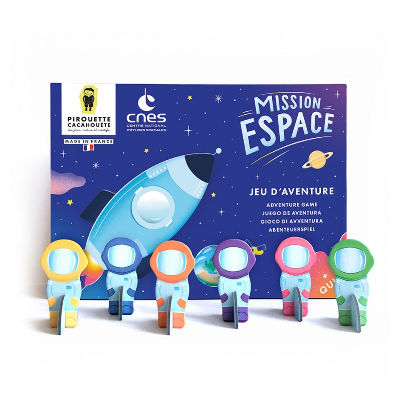Une mission spatiale se déroule tout au long de la célèbre spirale pour atteindre la case 63 en premier. Les fusées aident à avancer plus vite, mais attention au trou noir et autres cases pièges !
