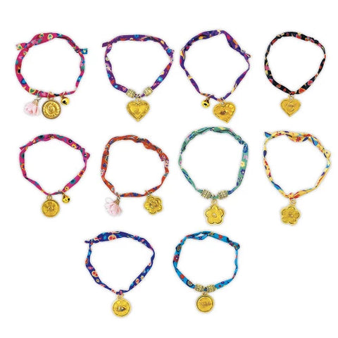 Créez vos propres bracelets bohème chic avec ce kit complet de 10 bracelets à rubans fleuris. Chaque bracelet se personnalise facilement grâce aux breloques dorées incluses, parfaites pour exprimer votre style unique. Idéal pour les créatives en quête d'accessoires originaux, ce kit offre tout le nécessaire pour confectionner des bijoux à votre image. Portez-les fièrement au quotidien ou offrez-les à vos proches pour des cadeaux personnalisés et mémorables. Un projet créatif ludique qui transforme chaque bracelet en pièce unique et précieuse.