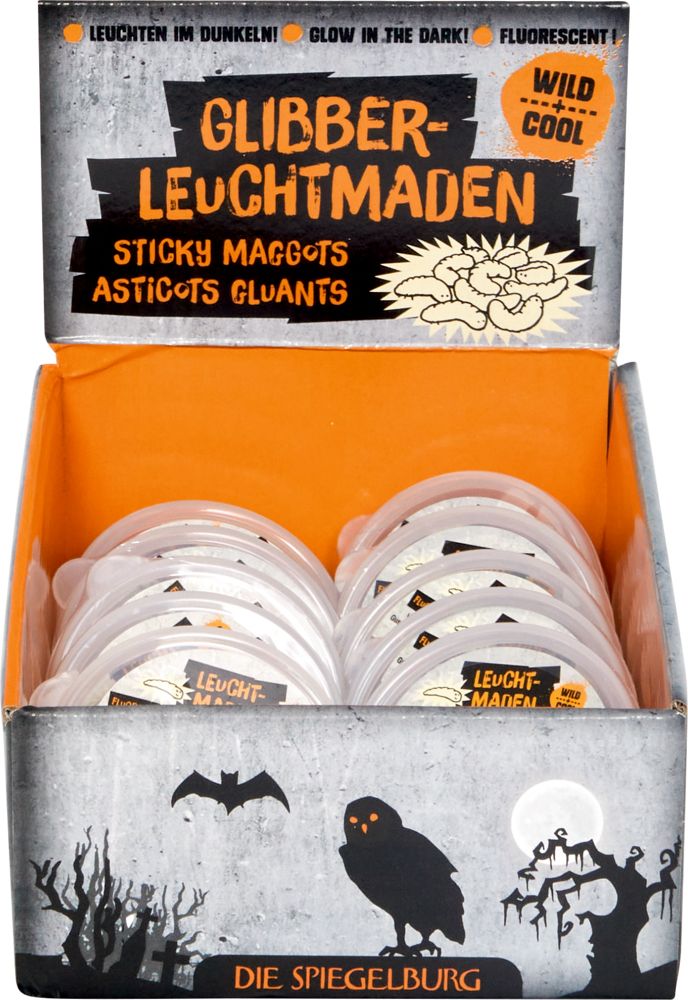 Découvrez les asticots gluants fluorescents de Die Spiegelburg, qui brillent dans le noir pour une ambiance terrifiante ! Mesurant environ 3 cm, ils sont parfaits pour jouer ou ajouter une touche originale à votre décoration d’Halloween. Ces petites créatures lumineuses promettent des moments ludiques et frissonnants dans la chambre des enfants.