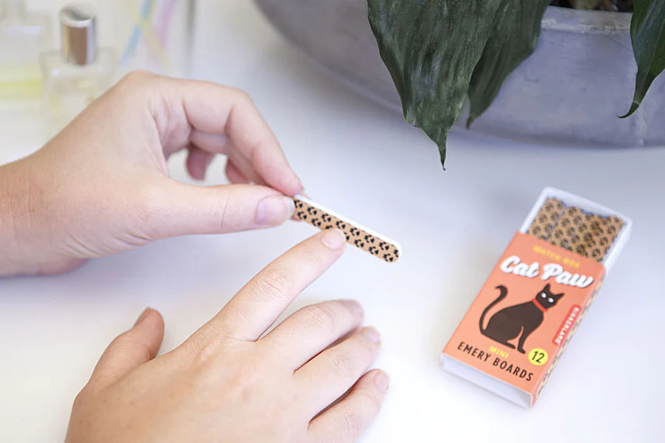 Gardez vos griffes en éveil avec ce jeu de planches d'émeri à motifs de chat. Elles sont idéales pour voyager dans leur boîte d'allumettes originale. 12 limes par boîte.