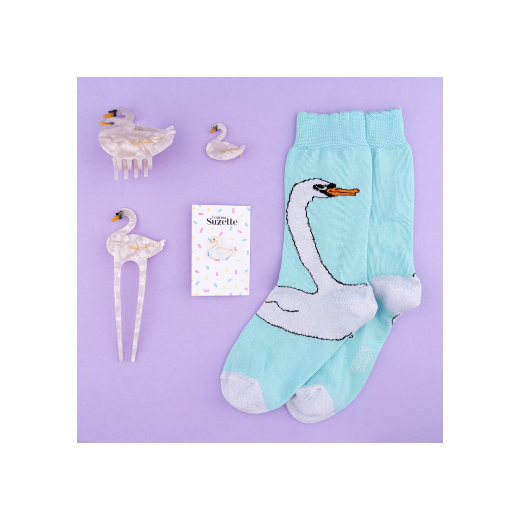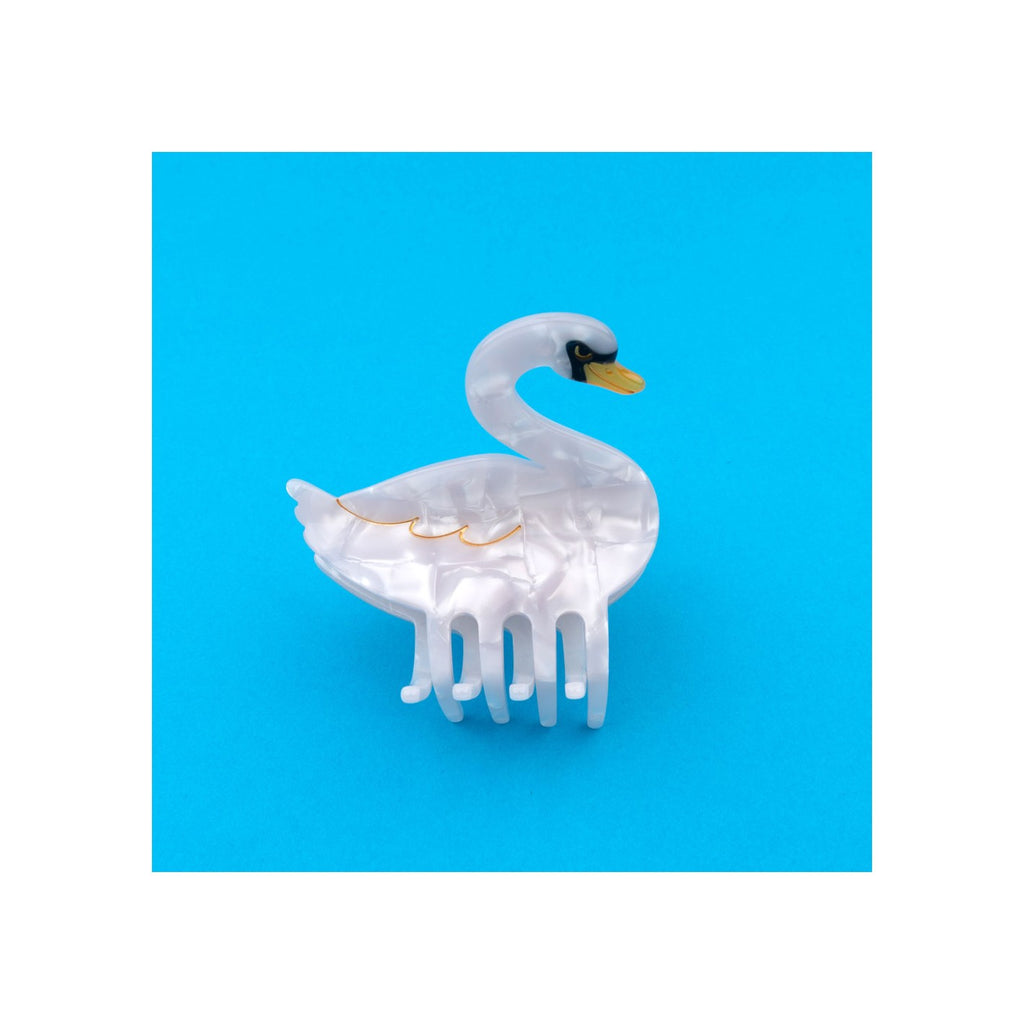 On adore les cygnes pour la poésie et l’élégance qui émanent naturellement d’eux (même s’ils ne sont pas toujours très sympas, on ne va pas se mentir…). Avec cette pince à cheveux nacrée blanche relevée de quelques petites touches de noir et d’orange, on s’assure un look rétro aussi romantique que kitsch comme on les aime ! Un accessoire avec de jolis détails dorés et de larges dents pour bien attraper tous nos cheveux, même longs.