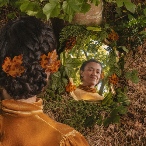 La pince feuille d'érable Coucou Suzette apporte une touche d’automne et d’aventure à votre coiffure ! Sa forme unique rappelle les balades en forêt et les souvenirs chaleureux du Canada. Inspirée par Mère Nature, elle célèbre la saison avec légèreté et bonne humeur. Parfaite pour égayer vos looks tout en gardant vos cheveux bien en place, cette pince est un clin d’œil joyeux aux amoureux de la nature et des voyages.