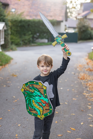 Lancez-vous dans l'aventure avec notre épée Green Dragon, le compagnon idéal du bouclier Green Dragon ! Fabriquée en mousse EVA souple mais résistante, cette épée est conçue pour s'amuser sans crainte et jouer sans souci.