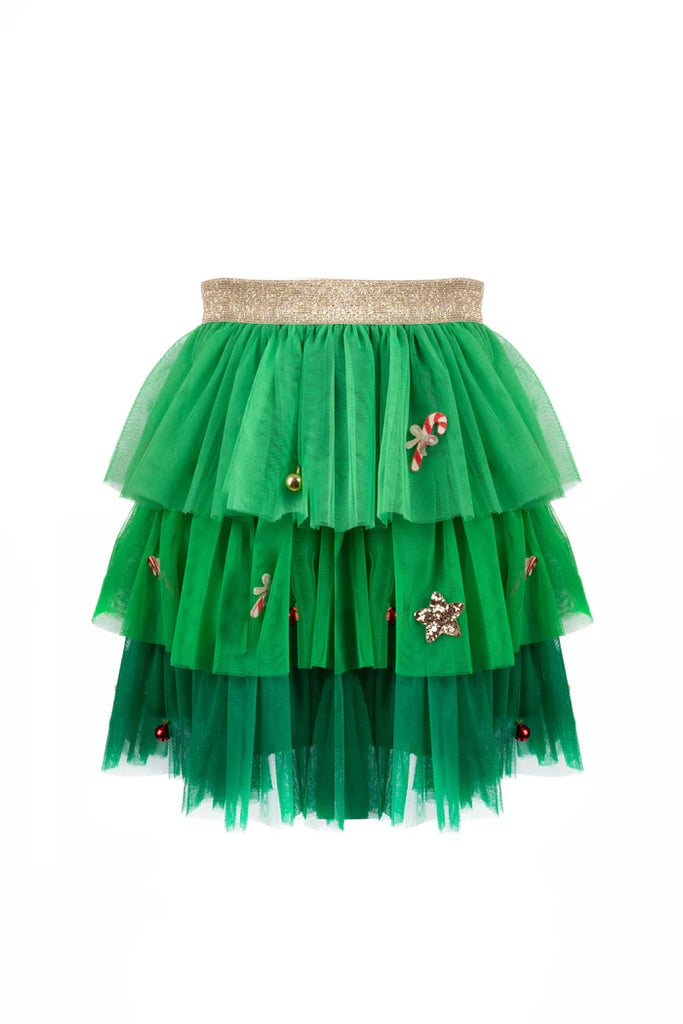 Dotée d’une base noire recouverte de rangées de sequins arc-en-ciel scintillants, elle crée des rayures étincelantes qui captivent à chaque mouvement. Sa ceinture élastique dorée assure un maintien confortable et brillant, idéale pour virevolter sur la piste ou briller sous les projecteurs.