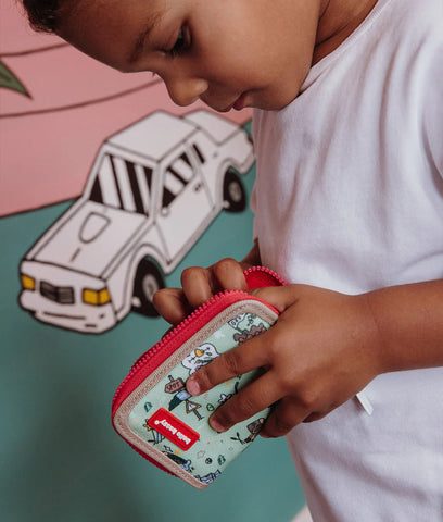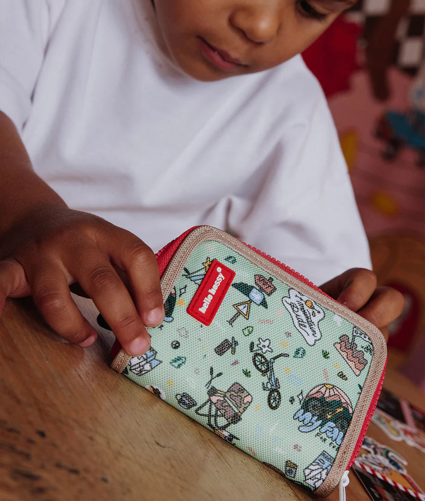 Le Porte-monnaie pour enfants, Mountain Ride, est apprécié pour ses motifs, son jeu de couleurs et le fait qu'il soit assorti à nos valises et casquettes, du même Nom. C'est une top idée cadeau pour les kids. Leur premier porte-monnaie !