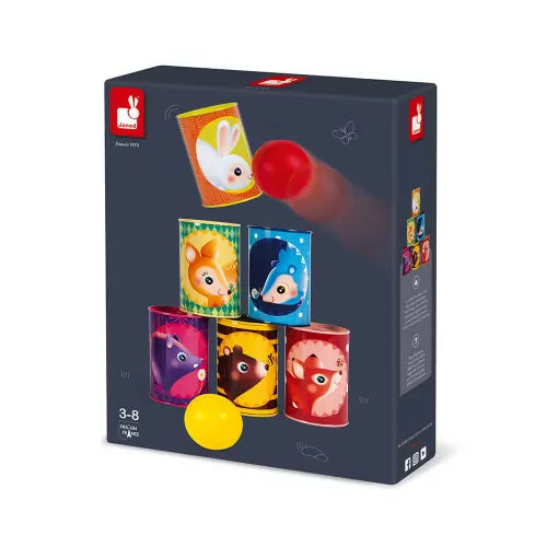 Amuse-toi à faire tomber toutes les boîtes en un minimum de lancers avec ce chamboule-tout forêt ! Six boîtes en métal décorées d’adorables animaux de la forêt et deux balles en mousse pour viser juste sans se faire mal. Parfait pour pimenter tes fêtes à la maison ou animer les après-midis en famille en plein air. Prêt à devenir le roi du chamboule-tout ? Que le meilleur lanceur gagne !