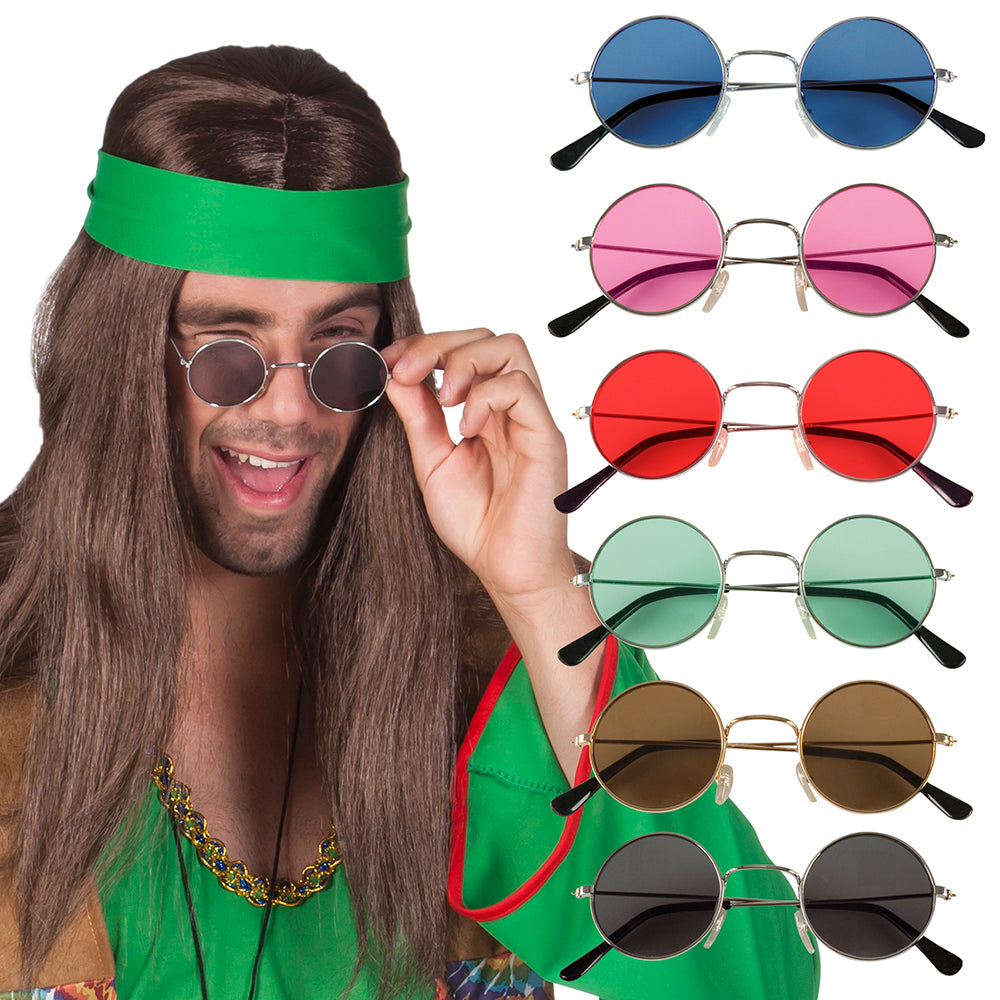 Lunettes rondes de hippie, 6 coloris proposés, noir, marron, bleu, rose, vert ou rouge. Idéal pour accompagner un déguisement lors d’une soirée sur le thème des années 70. Il est évident que vous pourrez incarner les stars du rock des années 60 et 70 avec une couleur peace and love. Si vous êtes fan de John Lennon, vous pourrez porter ces lunettes et chanter “imagine” devant un public de connaisseurs.