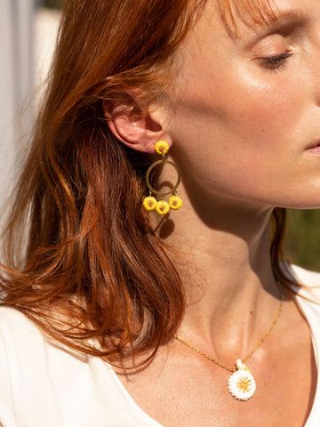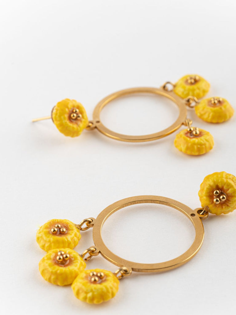 J736 Circle pendant earrings with yellow dandelions Poésie