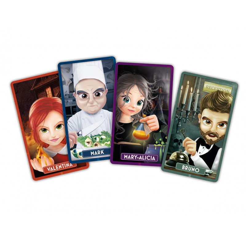 Mode lumière rouge pour se raconter des histoires qui font peur. Quatre fiches avec des portraits de personnages effrayants inclus.
