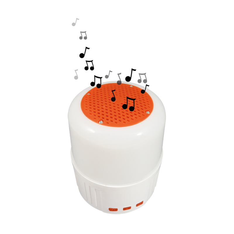 Une lampe de camping rechargeable avec une fonction enceinte Bluetooth. Elle se recharge grâce à son panneau solaire ou avec un câble USB.