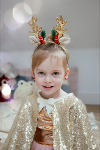 Plongez dans l'esprit des fêtes avec notre serre-tête Holiday Rudolph, l'accessoire parfait pour ajouter une touche de magie joyeuse à vos célébrations ! Ce serre-tête enchanteur est orné de bois de cerf ornés de paillettes dorées scintillantes, ajoutant une touche de glamour à votre look de vacances.