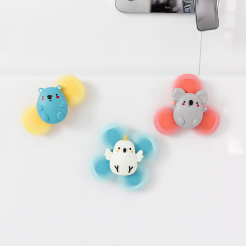 Un jouet sensoriel en trois parties à toucher, explorer, mâcher et TOURNER ! Conçu pour encourager la motricité fine, le jeu sensoriel et l'apprentissage par cause à effet, ce jouet présente un trio d'adorables animaux australiens dotés chacun d'une toupie à deux, trois ou quatre pales. Une solide ventouse permet de le fixer facilement à toute surface lisse (baignoires, carreaux, chaises hautes, miroirs, réfrigérateurs et vitres de voiture).