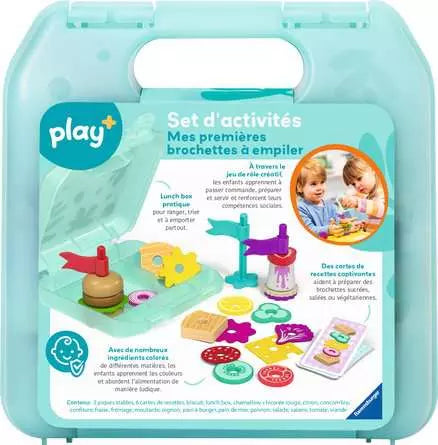 Créez des brochettes colorées avec ce set d'activité complet ! Composé de 30 pièces variées en différents matériaux, il inclut des baguettes en plastique souple et une lunch box pratique à emporter partout. Suivez les cartes de recettes pour apprendre les ingrédients et l'ordre, ou laissez libre cours à votre imagination ! Parfait pour développer la reconnaissance des couleurs, des textures et des catégories tout en s'amusant. Un jeu de rôle gourmand qui mêle apprentissage et créativité.