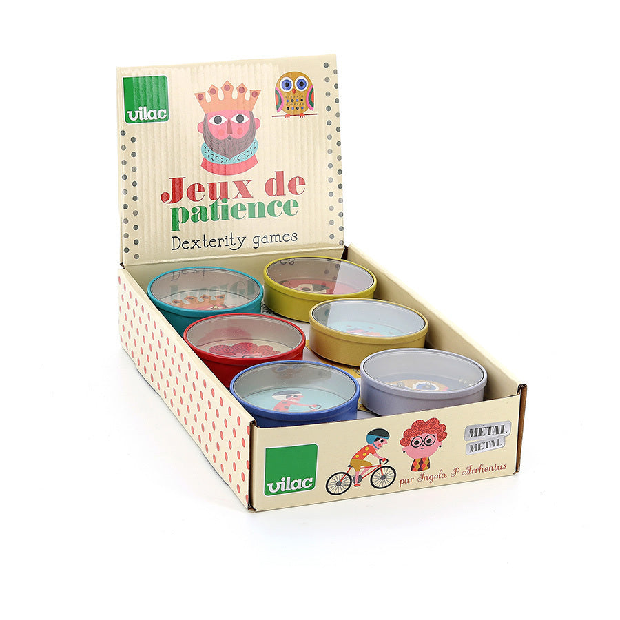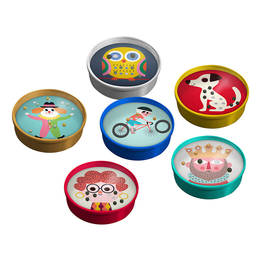 Un drôle de pif pour Monsieur, une galoche pour Madame, des tâches à positionner sur un chien ou des lunettes et boucles d'oreilles à replacer… Aurez-vous la patience et la dextérité pour venir à bout de cette collection de 6 jeux de patience rigolos en métal ?
