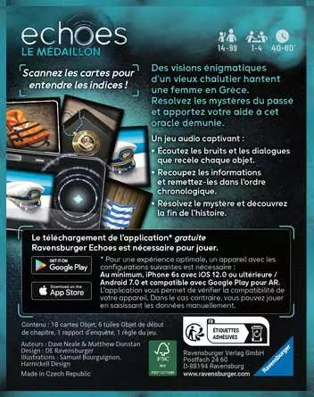 C'est pourquoi elle a fait appel à vos talents pour l'aider à éclaircir ce mystère. Saurez-vous trouver ce qu'il se cache derrière les visions qu'elle a ? Chaque carte représente un objet que vous avez trouvé sur votre lieu d’enquête. Recoupez les informations et remettez-les dans l’ordre chronologique. Résolvez le mystère et découvrez la fin de l’histoire. Quelques secondes d'explication suffisent pour commencer à jouer ! Idéal pour les soirées entre amis ou en famille.