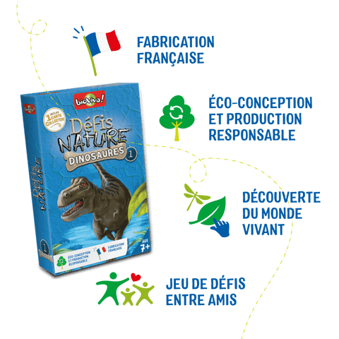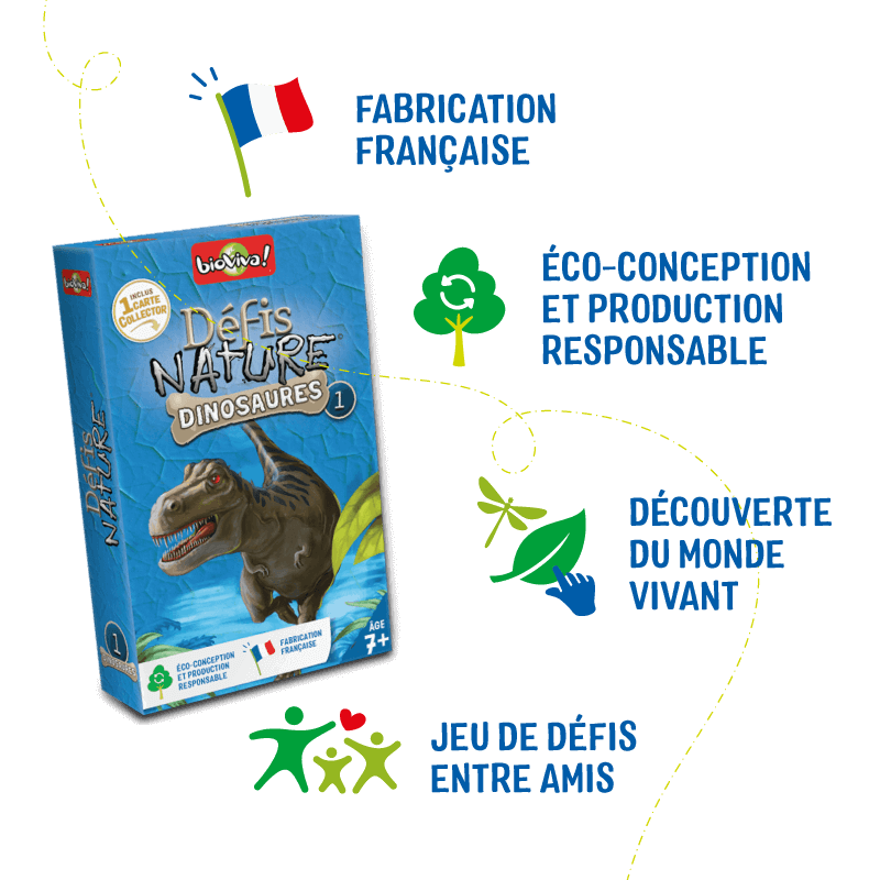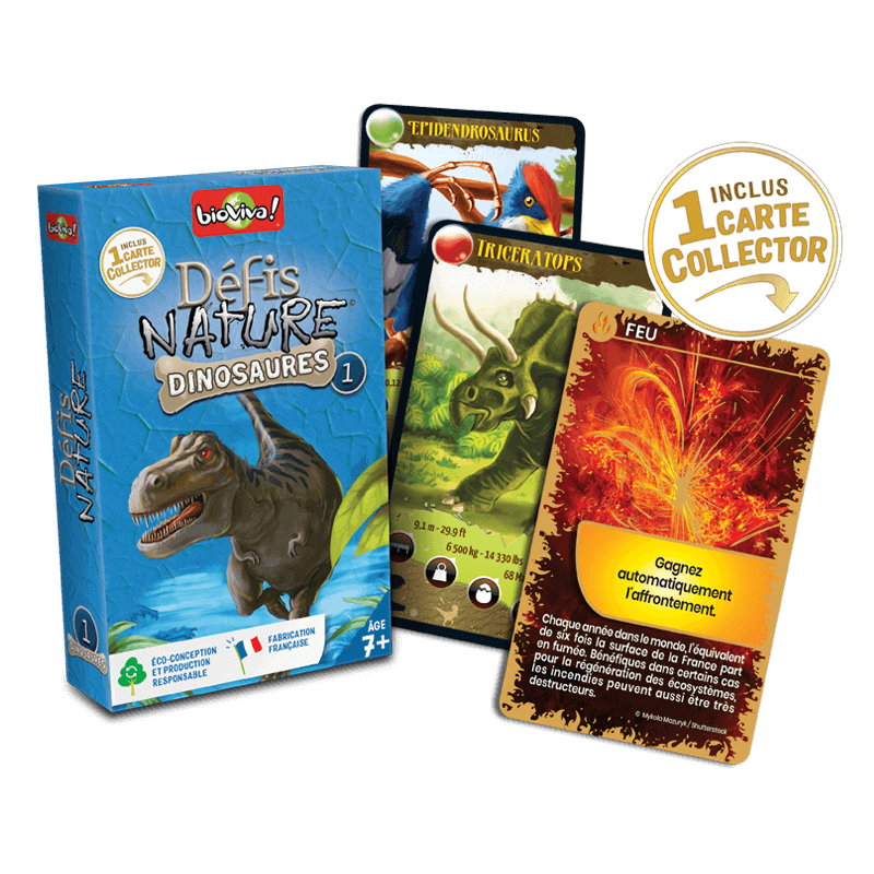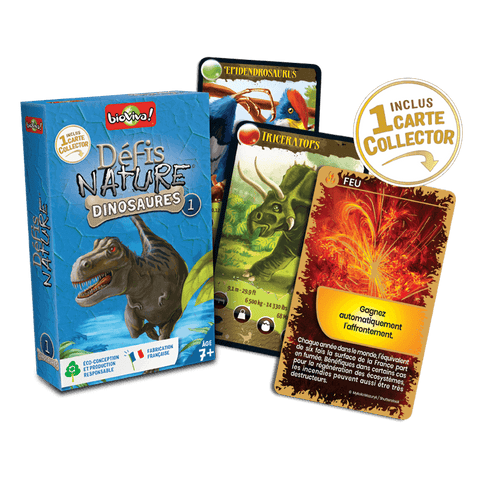 Défis Nature - Dinosaures 1 vous emmène à la rencontre des dinosaures les plus surprenants ! Découvrez les espèces disparues, puis pariez sur les points forts de vos animaux pour collecter toutes les cartes du jeu et remporter la partie. Alors, prêts à relever le défi ?