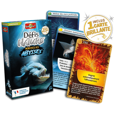 Défis Nature - Monstres des abysses vous emmène à la rencontre des monstres des profondeurs sous-marines ! Découvrez leurs facultés exceptionnelles, puis pariez sur leurs points forts pour collecter toutes les cartes du jeu et remporter la partie. Alors, prêts à relever le défi ?