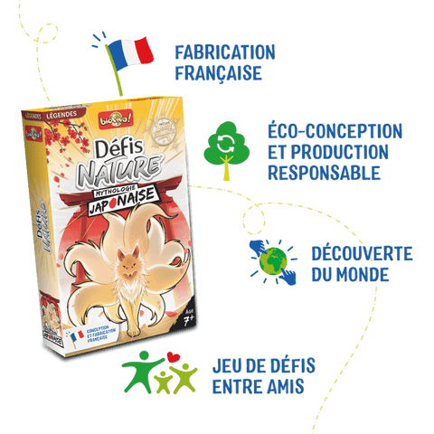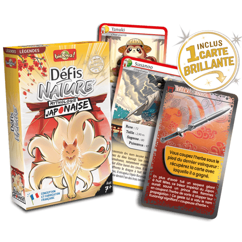 Défis Nature - Mythologie japonaise vous emmène à la rencontre des personnages emblématiques de la mythologie japonaise ! Découvrez leurs facultés exceptionnelles, puis pariez sur leurs points forts pour collecter toutes les cartes du jeu et remporter la partie.