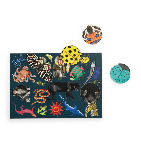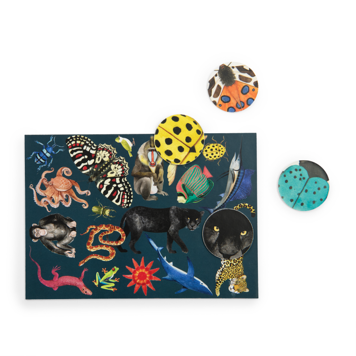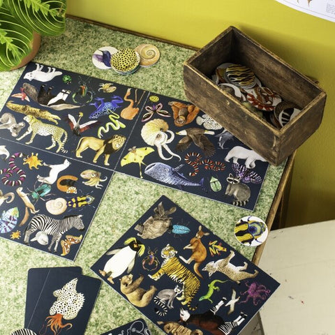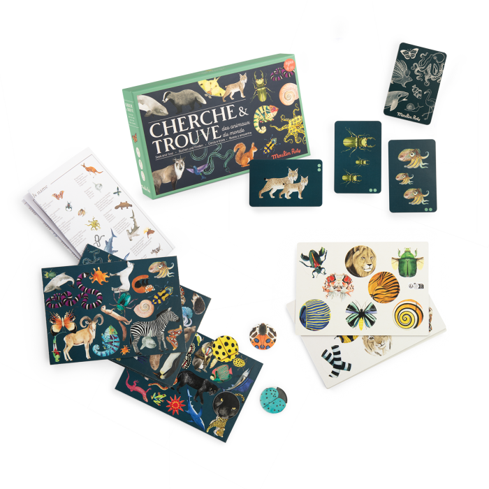 Cherche et trouve les animaux du monde le plus vite possible ! Pour pimenter le jeu et gagner plus de points, piochez une carte curiosité. A chaque partie, changez le plateau de jeu en modulant les 9 planches.