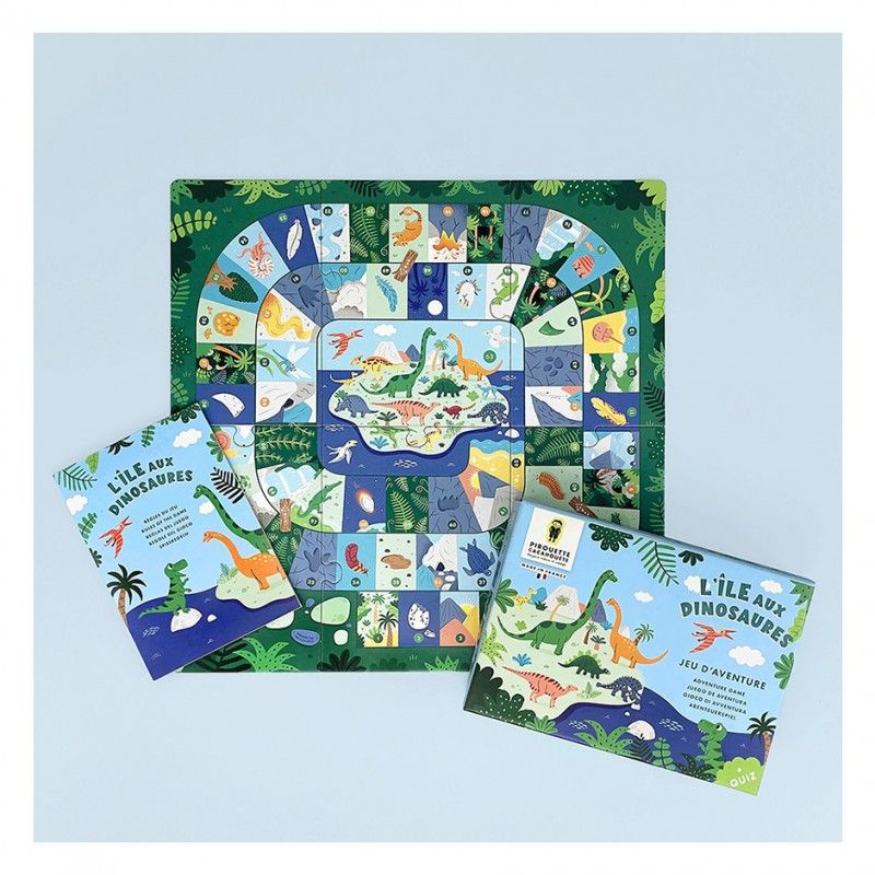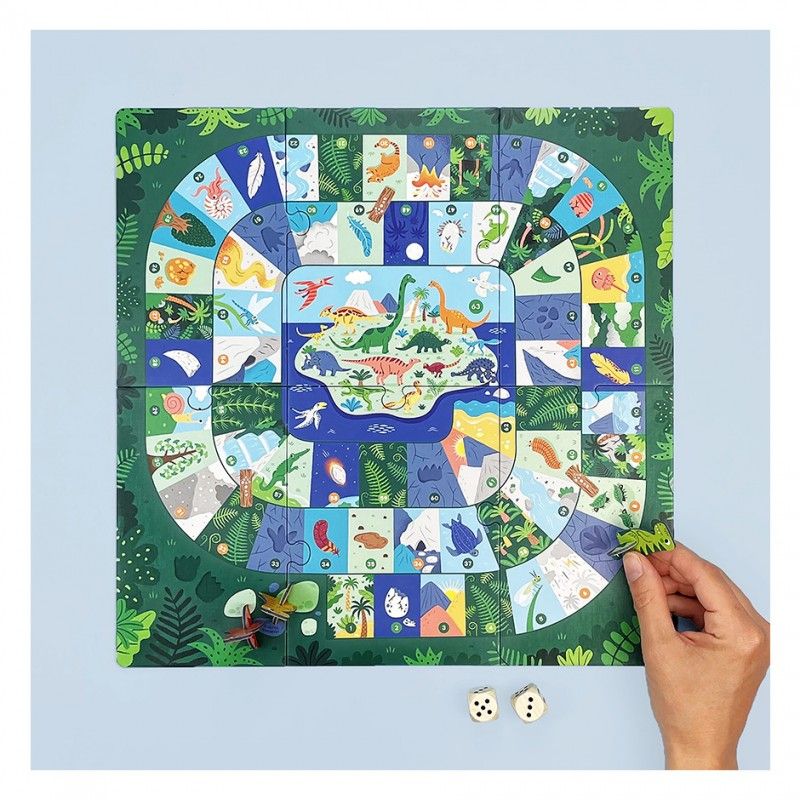 Avec ce jeu éducatif sur le thème des dinosaures, les petits explorateurs embarquent pour un voyage palpitant au cœur de la légendaire spirale du jeu de l’Oie… direction la fameuse case 63 : l’Île aux dinosaures !