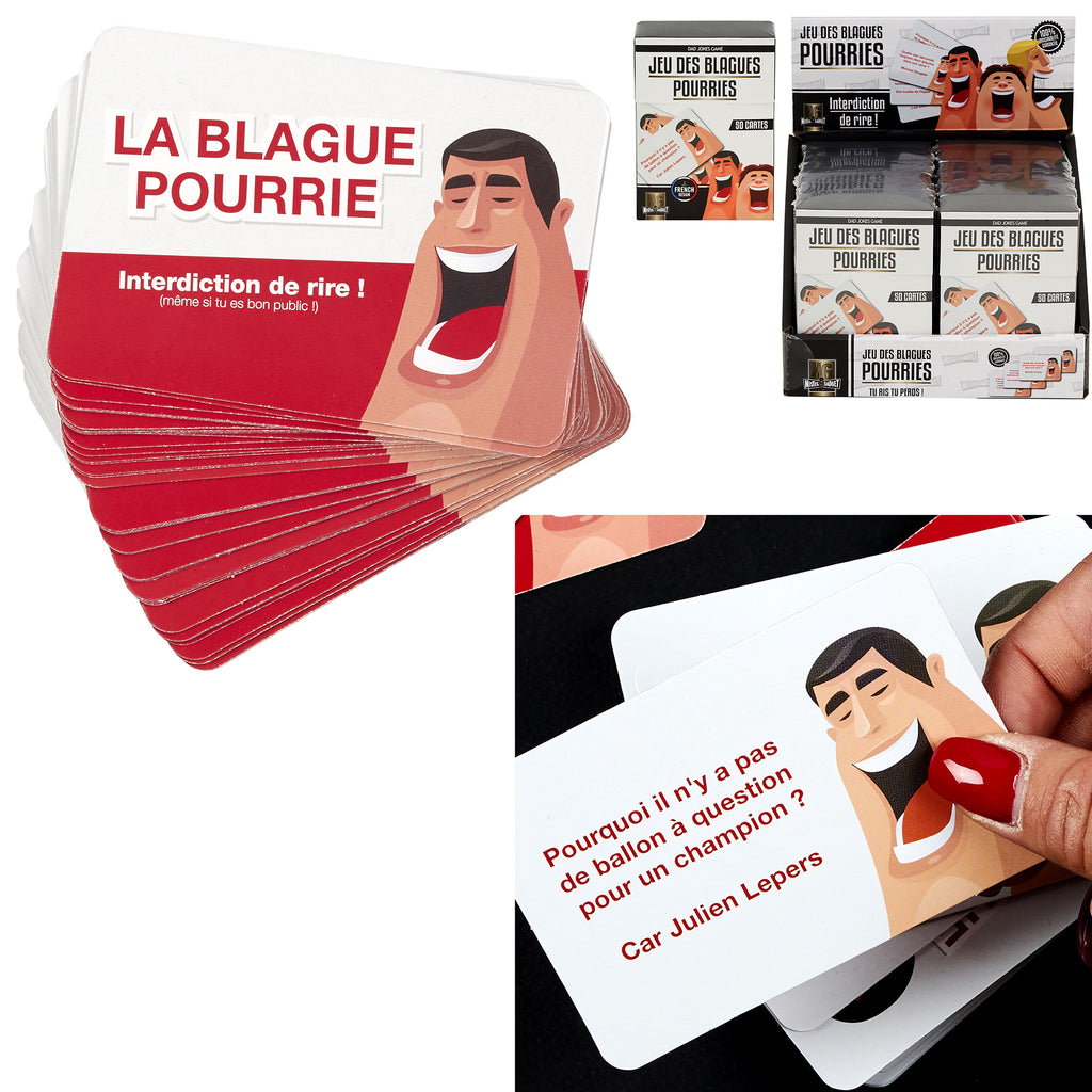 Un jeu de cartes fun avec blagues pourries, pour jouer en famille lors d’une soirée, d’un gouter d'anniversaire, ou du nouvel an !
