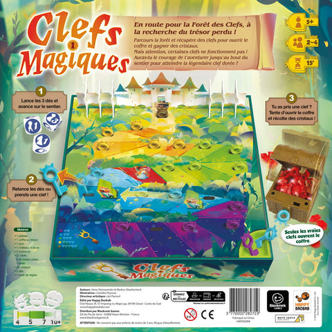 Parcours la forêt et récupère des clefs pour ouvrir le coffre et gagner des cristaux. Attention, certaines clefs ne fonctionnent pas ! Auras-tu le courage de t'aventurer jusqu'au bout du sentier pour atteindre la légendaire clef dorée ? Clefs Magiques est un jeu de stop ou encore, où les enfants devront trouver la bonne clef qui ouvre un fabuleux coffre aux trésors.