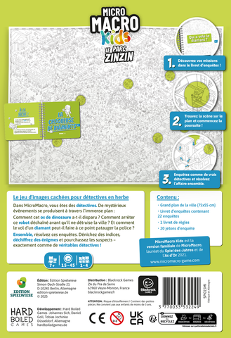 Bienvenue dans l’univers fascinant de MicroMacro Kids, un monde où chaque ruelle, chaque coin de rue, et chaque petit détail dissimule un mystère à résoudre ! Dans cette version spécialement conçue pour les enfants, toute la famille peut se plonger dans des enquêtes captivantes et pleines de rebondissements, tout en évoluant dans un environnement ludique, accessible et sans violence. Les jeunes détectives pourront affiner leur sens de l’observation, développer leur logique et leur capacité de déduction, tout en résolvant des énigmes et en cherchant des indices cachés.